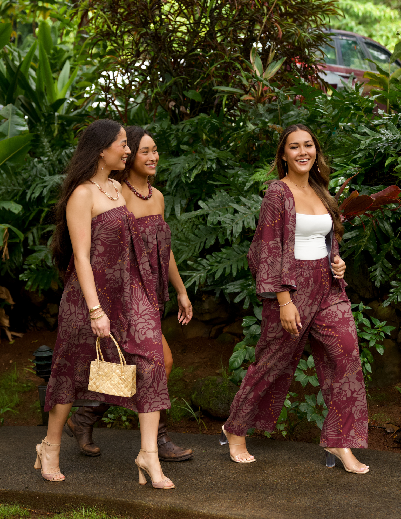 Inspired by one of Hawaiʻi’s most meaningful plants, this collection is rooted in story, tradition, and connection. The ʻŌhiʻa lehua holds a special place in hula, used to honor the stories and deities brought to life through movement. At its heart is the moʻolelo of ʻŌhiʻa and Lehua—a love so strong they were transformed into tree and flower, forever intertwined.