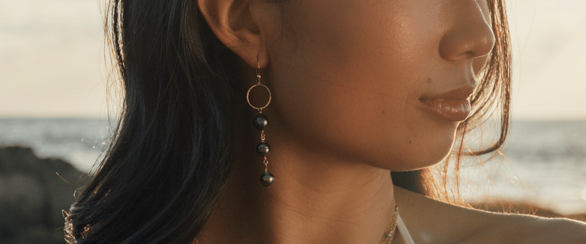Kai Nalu 'Elua Earrings - Tahitian Pearl